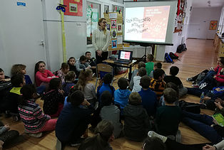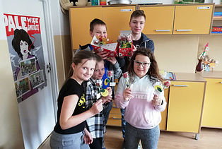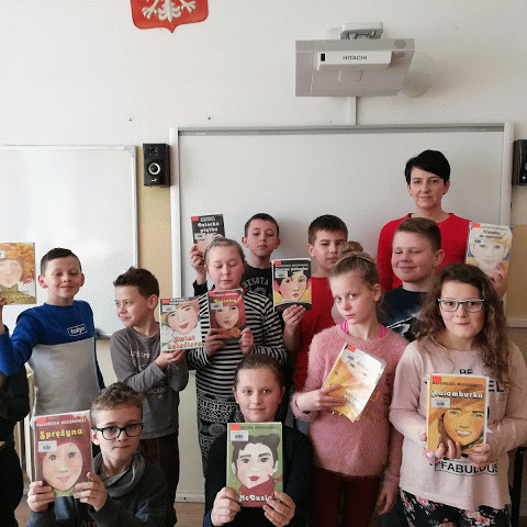 W  dniu 29 marca uczniowie klasy 4 wzięli udział w lekcji bibliotecznej „Spotkanie z Jeżycjadą”. Bibliotekarz przybliżył im postać Małgorzaty Musierowicz, zaprezentował serię Jeżycjada oraz przeczytał fragment książki „Opium w rosole”. Uczniowie aktywnie rozwiązywali rebusy oraz zakodowane informacje. Na zakończenie każdy wybrał sobie książkę, z którą ma w domu zrobić  sleeveface.