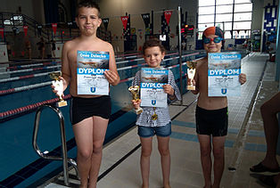 Nasi uczniowie zaskakują nas coraz bardziej sowimi zdolnościami. W przed dzień wakacji troje z nich rodzinnie stanęło na podium zawodów pływackich z okazji Dnia Dziecka o Puchar Prezydenta Nowego Sącza Ludmira Handzla.