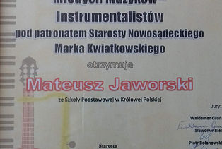 Nasi uczniowie godnie reprezentowali nasza szkołę i swoje talenty, a dowodem na to jest I miejsce Mateusza Jaworskiego. Foto relację z konkursu oraz koncertu laureatów, który odbył się 10 maja, można obejrzeć na facebooku Powiatowego Młodzieżowego Domu Kultury w Starym Sączu