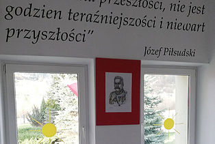 4. O godzinie 11.00 odsłonięto portret Marszałka Józefa Piłsudskiego. Uroczystego odsłonięcia dokonała Pani dyrektor Anna Dudzińska oraz przedstawiciele Rady Rodziców. Tuż nad portretem zamieszczono słowa Marszałka Józefa Piłsudskiego: "Kto nie zna przeszłości, nie jest godzien teraźniejszości i niewart przyszłości". Wszyscy uczniowie otrzymali również pamiątkowe przypinki.