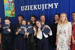 I tak 19 czerwca 2019 r. (wcześniej niż planowano) Dyrektor szkoły Pani Anna Dudzińska pogratulowała uczniom uzyskanych wyników w nauce i wielu sukcesów w konkursach i zawodach sportowych.  Przy tej okazji zostały wręczone nagrody dla uczniów III klasy, którzy otrzymali wyróżnienie w konkursie Planeta Energii i dostali oprócz nagród rzeczowych czek na 2000 zł oraz przepiękną statuetkę.